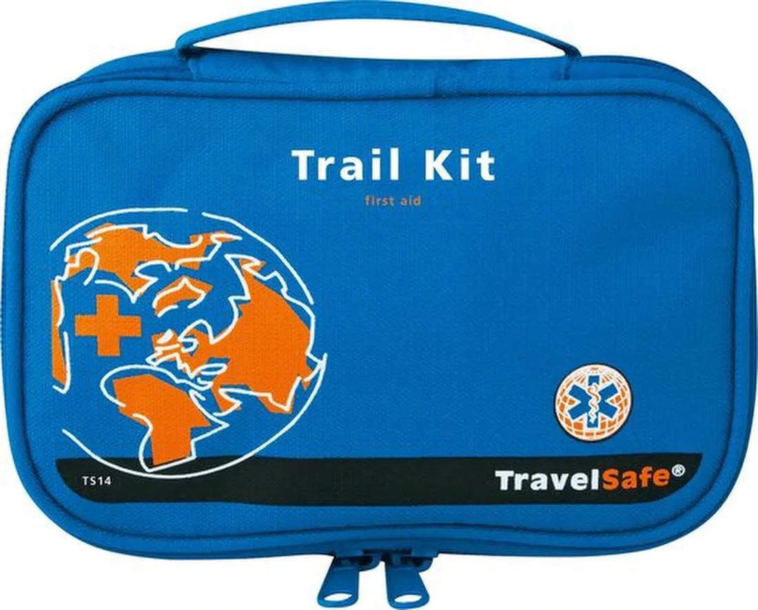 Compacte Travelsafe Trail Kit met 24 essentiële EHBO-artikelen. Licht, stevig en eenvoudig te bevestigen aan rugzak of riem. Ideaal voor wandelaars, hikers en backpackers die onderweg voorbereid willen zijn op kleine verwondingen.